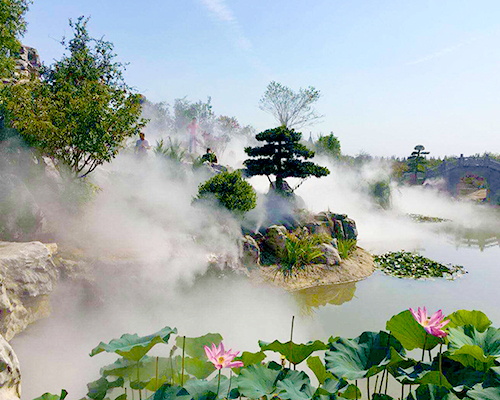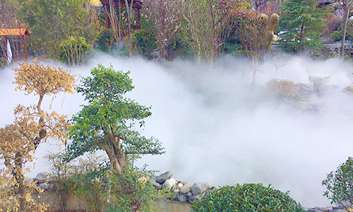 | 景觀造霧領域 它可使您如臨深山,回歸自然,如入仙境,提高人文及自然景觀的造景效果顯著,起畫龍點睛之筆。景觀霧化能極大的增加空氣中負氧離子的含量,無蚊蠅叮擾,極大地營造和改進人類生存和居住環境。 ? |