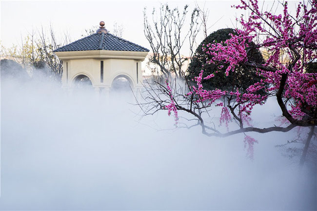 霧森系統在景觀霧領域的運用,展現了人類文化與自然的結合,滿足了大家走進自然的愿望和對美的追求。此外,它形成的霧隨風飄移,與自然環境融為一體,更具有觀賞價值和趣味性。霧森系統能夠形成特殊的霧云,在園林景觀中有著廣泛的運用。大家不但能夠遠眺,感受隱約而來的神秘感,還能夠置身在茫茫霧海中呼吸潮濕的空氣。