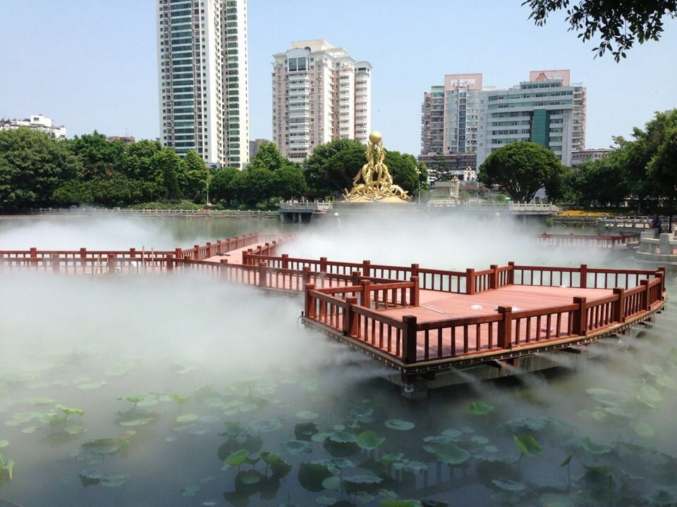 景觀造霧人工湖造霧體現著人類文化與自然的融合,滿足了人們期待回歸自然的愿望和對美的追求。潔境公司人造霧系統所控制下的環境,是將濾凈新鮮的水質,經由低壓泵將水霧氧化漂浮于空氣中,因此它可以很快的蒸發,高溫時節快速蒸發的水霧可以使周圍環境在幾分鐘內下降3~7℃左右,同時在周圍形成一層輕紗狀的云霧,防止空氣中的灰塵及其他雜物,這些陣陣霧氣能帶動空氣流動,隨之帶進新鮮氧氣(含大量負離子),此時空氣濕度呈現中溫中濕,這些流動的空氣加上新鮮氧氣,理論上便可以抑制病菌入侵,達到環境控制的理想舒適度。霧化因此可以同時作為保濕、降溫以及夏日消暑的多功能產品。由于噴霧形成特殊的云霧效果,可以為建筑以及園林景觀添姿增色,現已成為建筑審計與景觀設計中的寵兒。