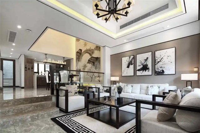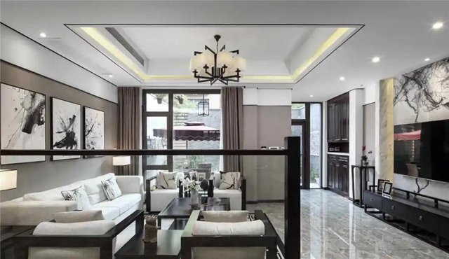 直線裝飾在空間中的使用,不僅反映出現(xiàn)代人追求簡單生活的居住要求,更迎合了中式家具追求內(nèi)斂、質(zhì)樸的設計風格,使“新中式”更加實用、更富現(xiàn)代感。