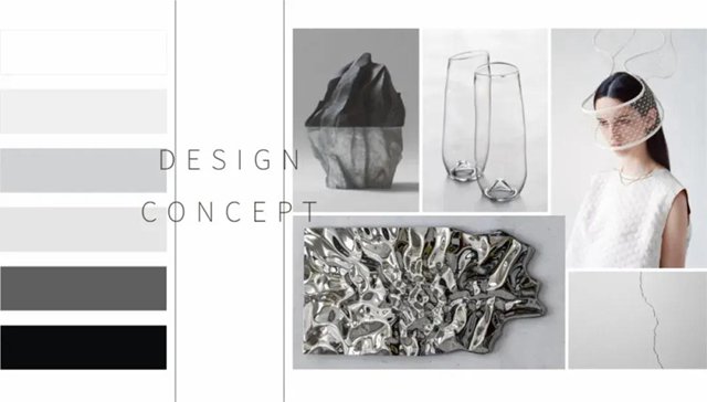 The overall style is dominated by a large area of white space, and the simple and rational black soft clothing overlaps and combines with each other to form a patchwork volume, creating a "sense of conflict" with the calm and restrained pure white space in the area, creating a visual impact effect.