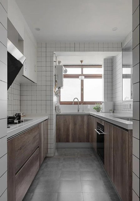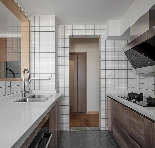 墻面小白磚搭配地面灰磚,干凈清爽易清潔。