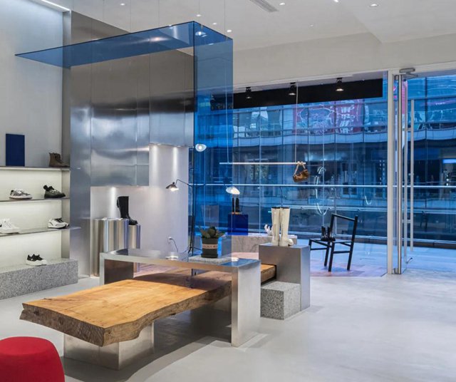 為了實現與傳統店鋪的差異化,設計師通過擴大櫥窗區面積,銷售區域后移的手法,使整個空間具有靈活性。