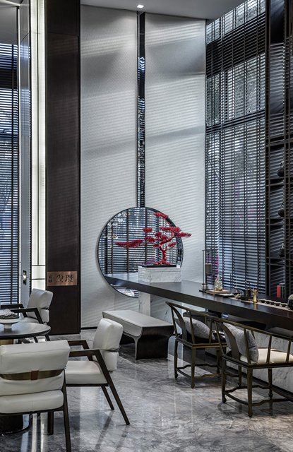 水吧空間設(shè)計呈現(xiàn)天然形態(tài)之美,現(xiàn)代元素下的中式營銷中心,每一處都盡顯優(yōu)雅。