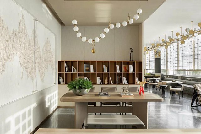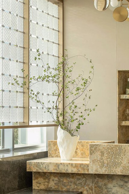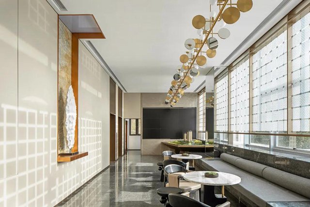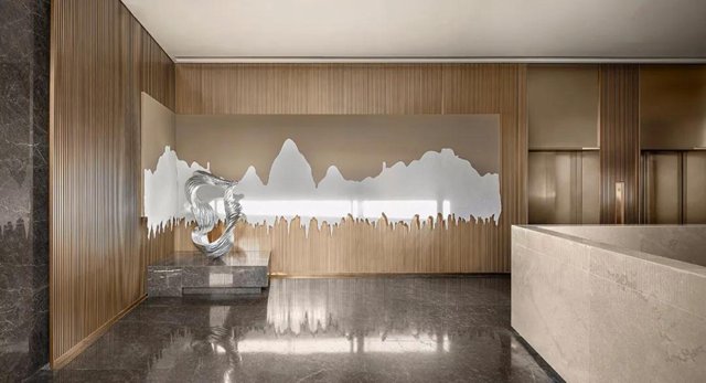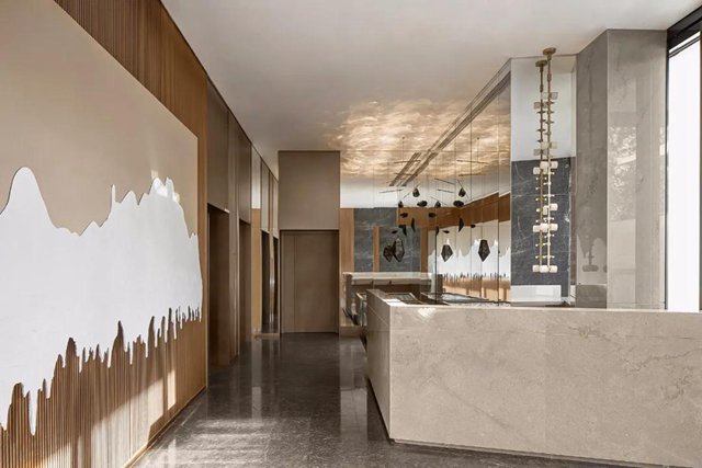 將山水意向納入室內,人在其間,不論徜徉或靜觀,總有臥游之趣。原本平淡的售樓中心,竟也因這份虛靜之氣忽而帶上了藝術空間的質地,令人忍不住想深入探索。