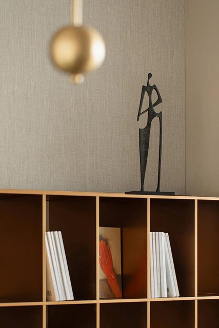人文山水也可以帶上摩登表情嗎?設計師用色調、材質和肌理來描繪情緒。全程的暖調給予有限的空間以親和的溫度,令人忍不住投入它的懷抱。而黃銅燈飾則在現代審美之外,還賦予空間一種型格款然的質感。單個的圓形燈片又以長線形延伸出去,串聯起空間的節奏。陽光照射在這些金屬飾片上,反射出迷離的光暈,恍若海邊浪濤激起的泡沫和那泡沫中幻夢的點點光斑……
