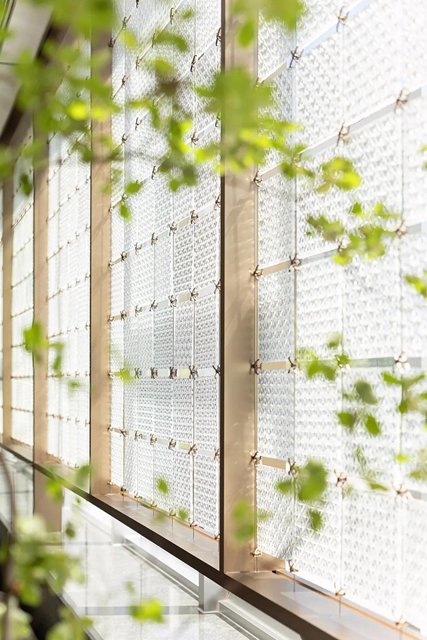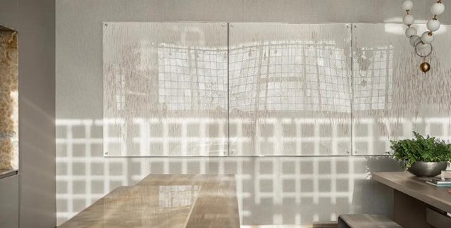 忽而,明媚的光線從窗墻上一齊涌入,仿佛為整個空間點亮了靈魂——它瞬間靈動了起來。光影移墻,透過窗戶上亞克力屏風照過來的天光,在對面墻體上形成一幅幅天然抽象畫般的光影格紋。它隨著一天中時刻的變化而行走,也隨著日出日落而生滅,巧妙地運用自然特性,塑造天地賦予的有生命的藝術品。