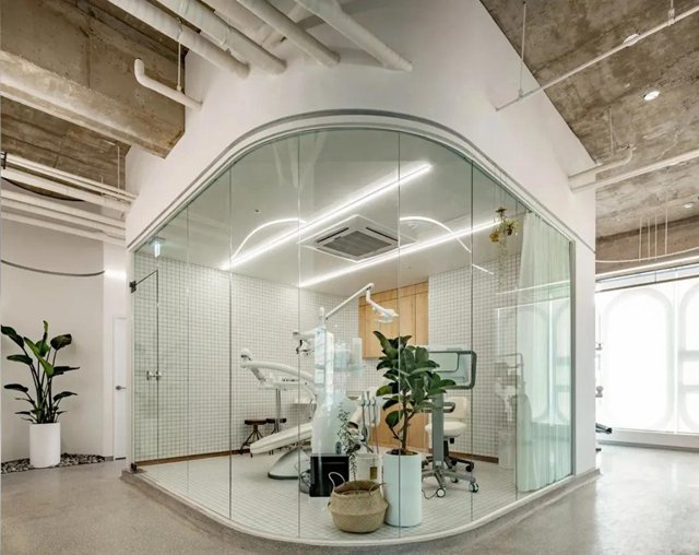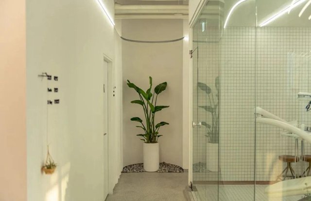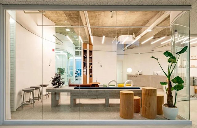 暖色燈光,水磨石家具,木質配件,卵石鋪地圍繞著花盆——更顯自然,為那些來此治療的人們提供了輕松和放松的氛圍。