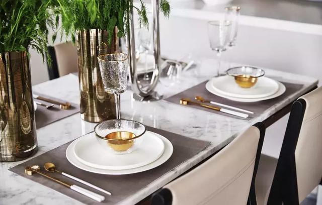 對于鋼性材料與線性材料的運用是本案設計的一大亮點,設計師充分利用金屬色和線條感營造金碧輝煌的豪華感,簡潔而不失時尚。