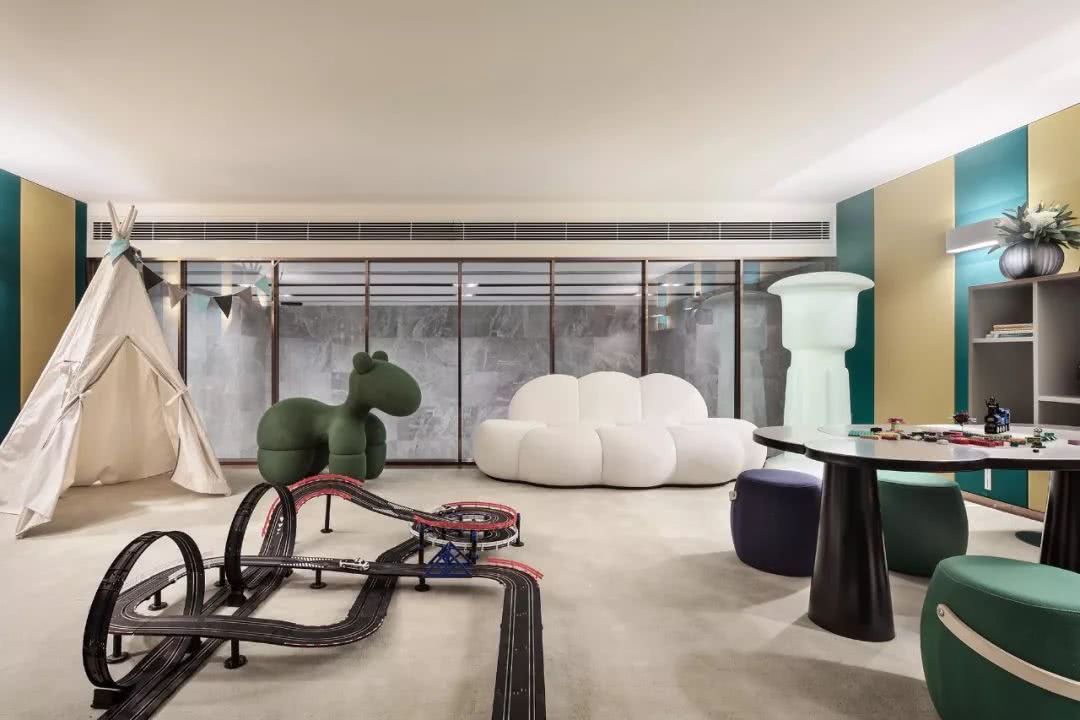 壹舍設計團隊以人、空間、時間的相對關系作為思考延伸,審慎探究其背后所承載的居住方式。布局和組織基于親子情感需求特點,注重空間的滲透與分隔,以現代設計語匯,結合動感生機的標識,營造靈動天地。