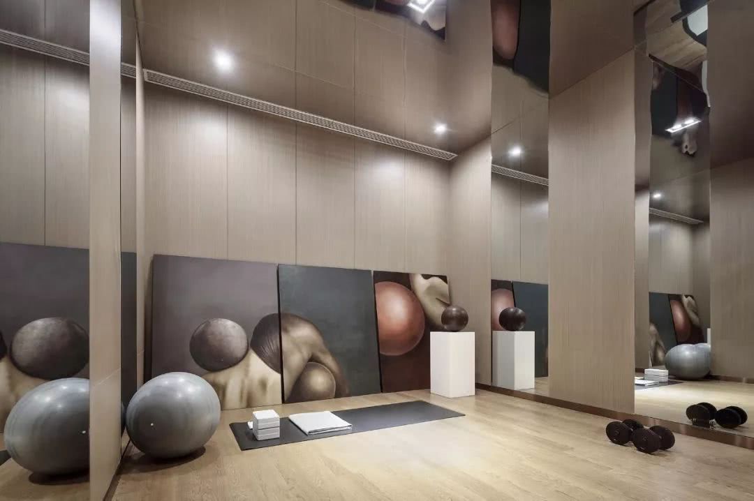 健身房以微幅緩降的曲線變化沉淀著室外的紛擾,于樸素中散逸輕靈闊達的藝術氣息。木飾面和鏡面兩種純粹的材質,令空間倍增寬闊,親切宜心。瑜伽球與畫作相得益彰,圓潤的弧度和力學美感在此融為一體。