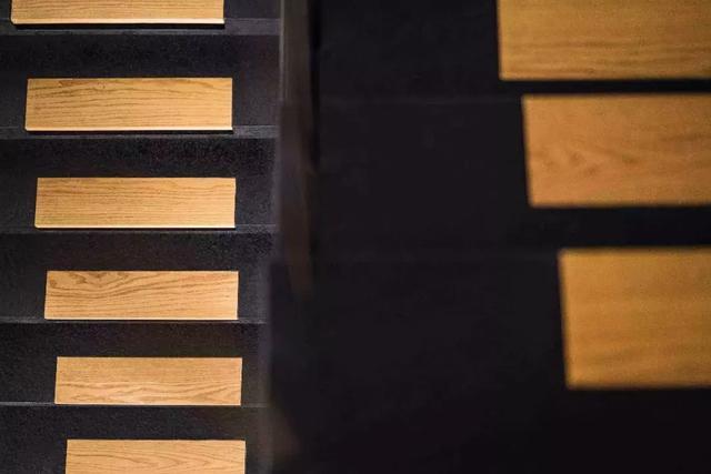 樓梯的設計采用家主人喜歡的簡約、中性、偏硬朗的風格,用原木與黑石條裝飾,步入二層有如在鋼琴琴鍵上彈奏般充滿韻律。二層是主人的寢臥區域,設計師巧妙地用一幅畫作了“門”,臥室就藏在畫的后面。