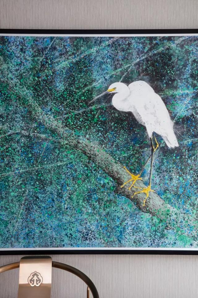 設計師運用古典法式元素勾勒出空間線條,但摒棄了繁瑣和沉重,注入現代感材質和顏色賦予其靈魂??蛷d相面對的兩人雕塑,體現家的歸屬感,營造出舒適、優雅、具有文化氛圍的空間,讓居住者實現與其對話的期許。