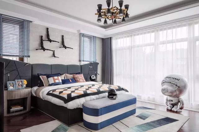 男孩房以充滿動感的雕塑和擺件點綴房間的各個角落,打造清爽與活力,陽光與朝氣的空間氛圍。同時滿足了孩子在成長中對娛樂和生活的需求。