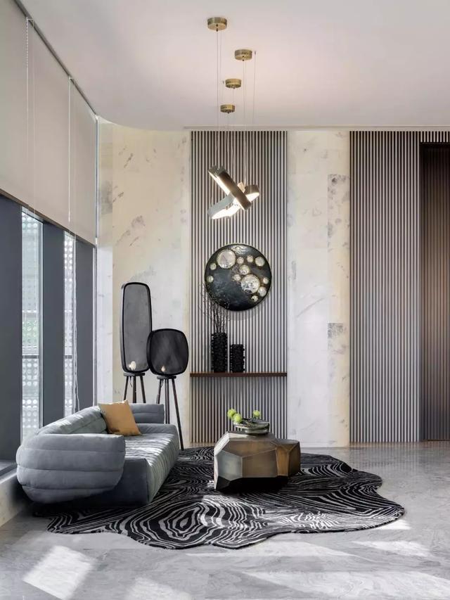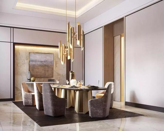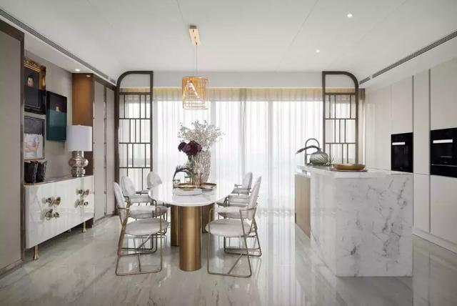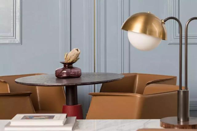 大理石紋理與黃銅的拼接,被廣泛運用于室內(nèi)設(shè)計之中。黃銅被當(dāng)作飾品、器皿、家具的材質(zhì),受到了許多設(shè)計師的歡迎。