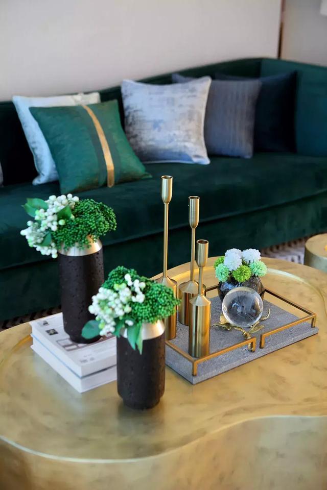墨綠的天鵝絨沙發蘊含著安穩與沉靜的力量,演繹新時代新風尚。