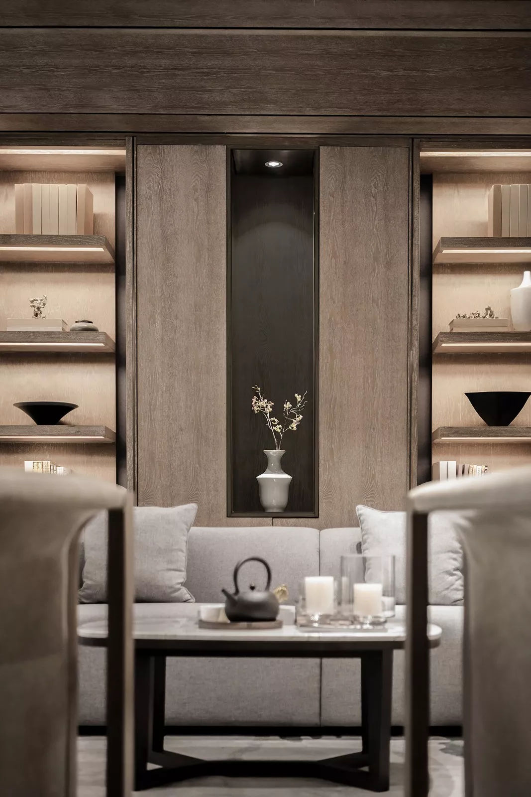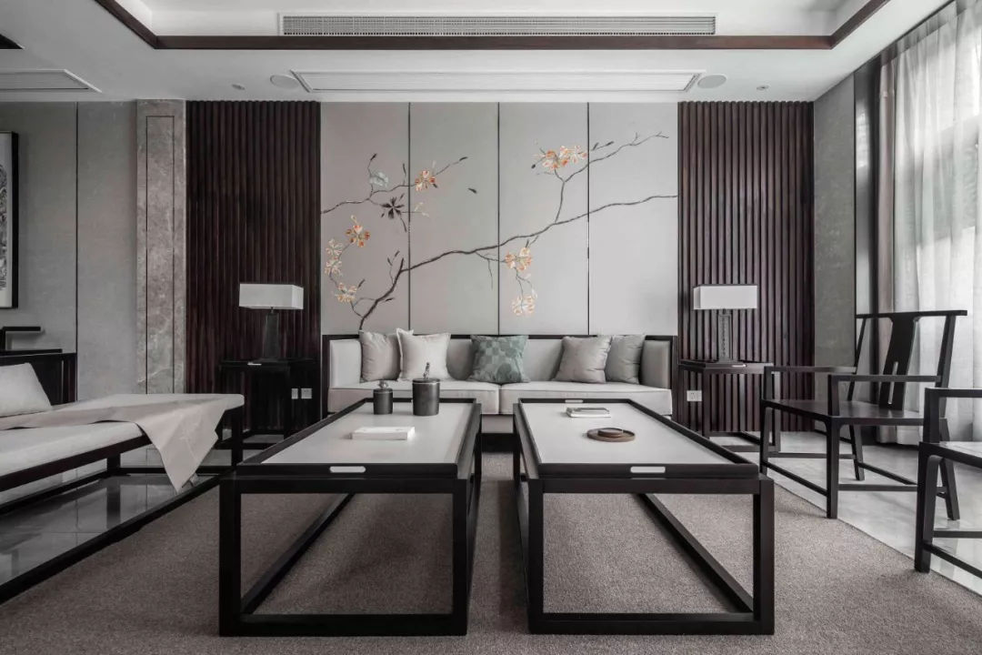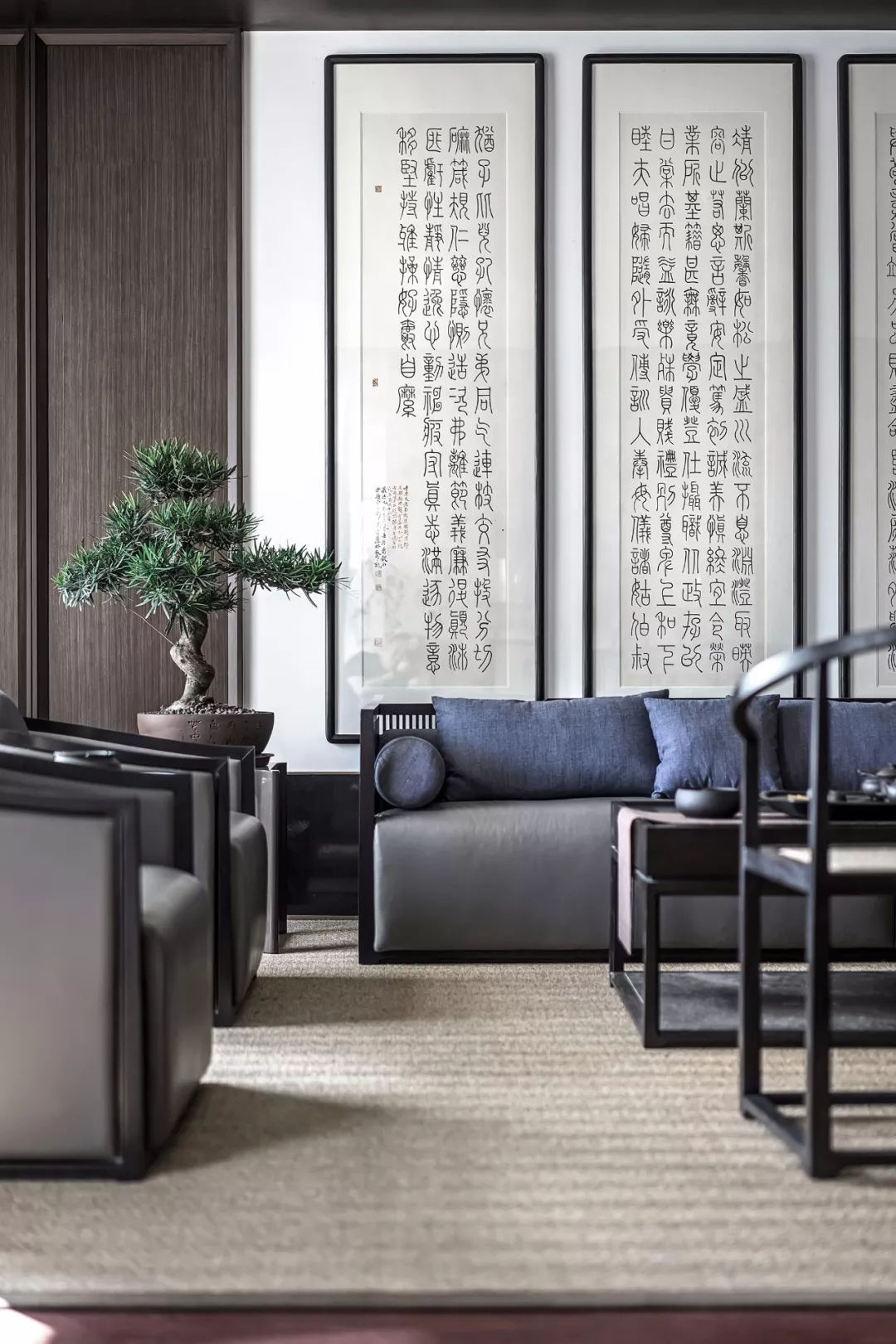 當“黑白灰”和“新中式”相遇,造就了一幅幅灰色的水墨寫意行云流水,一氣呵成。這樣躺在舒服的沙發上,光是欣賞著仿佛有生命般的水墨背景,任千年的故事順指間流淌,已經是一種享受。