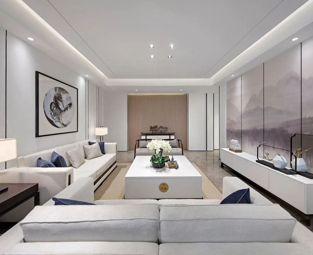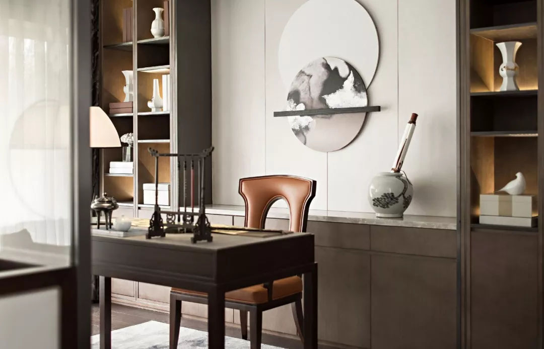 設計一套新中式風格家居,可以結合其天然質感與自然屬性來營造沉靜質樸、端方穩重的視感氛圍。而具體的搭配要點在于:一方面以木作裝飾墻面,打造高端質感。另一方面也可將棕色新中式裝飾作為空間的吸睛點用于中性色背景空間,效果一樣優雅驚艷。
