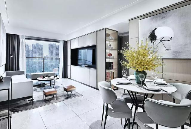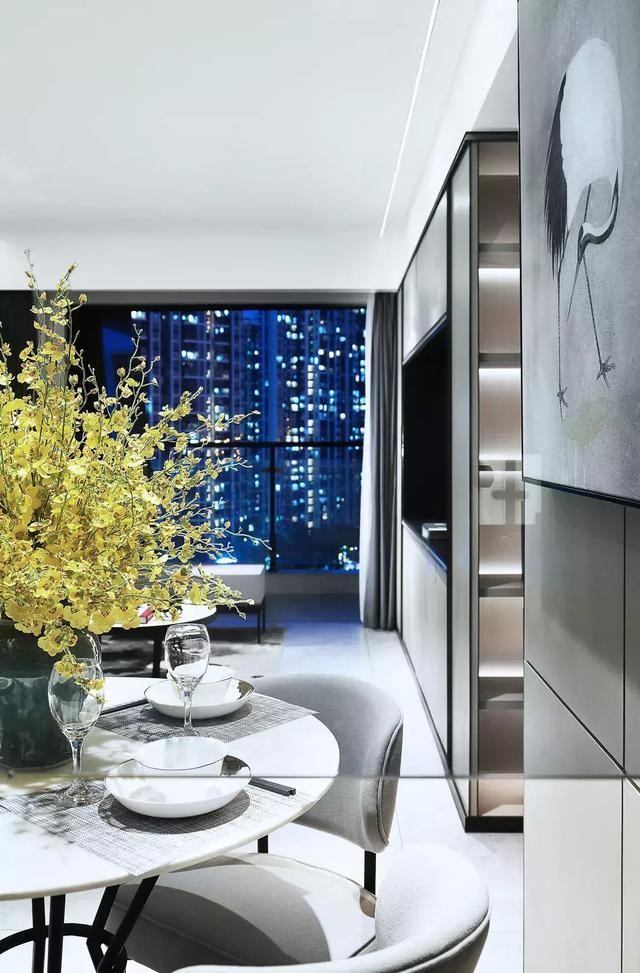 中式風格配色,除了黑白灰,還有帝王金黃色和中國紅了,餐廳這幅畫定制前為了能和餐桌上的花有呼應,加了少許黃色。