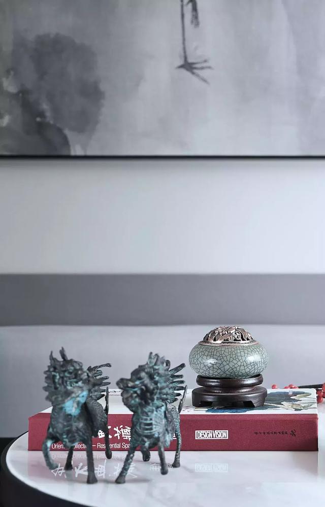 《小窗幽記》提醒“清閑之人不可惰其四肢,又須以閑人做閑事”,其中一項便是“洗硯宿墨”,地毯選用水墨紋,把中式元素引進。