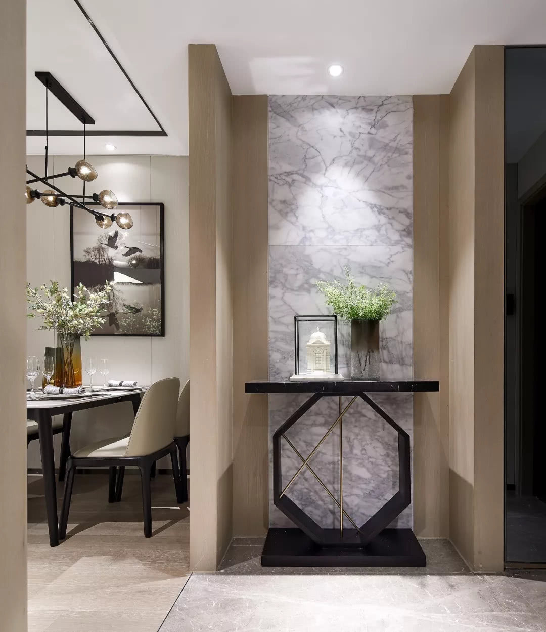 此外,本戶型立意“鏡頭里的世界”,在注重空間上功能性設計及布局的同時,軟裝搭配上從用餐區、過渡走廊、休憩區及臥室處皆引用了富含深意的攝影作品。