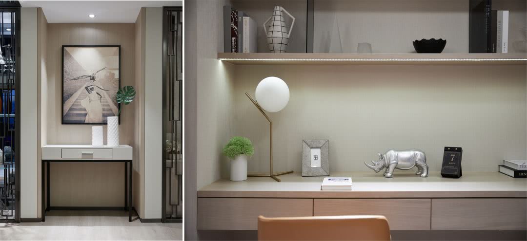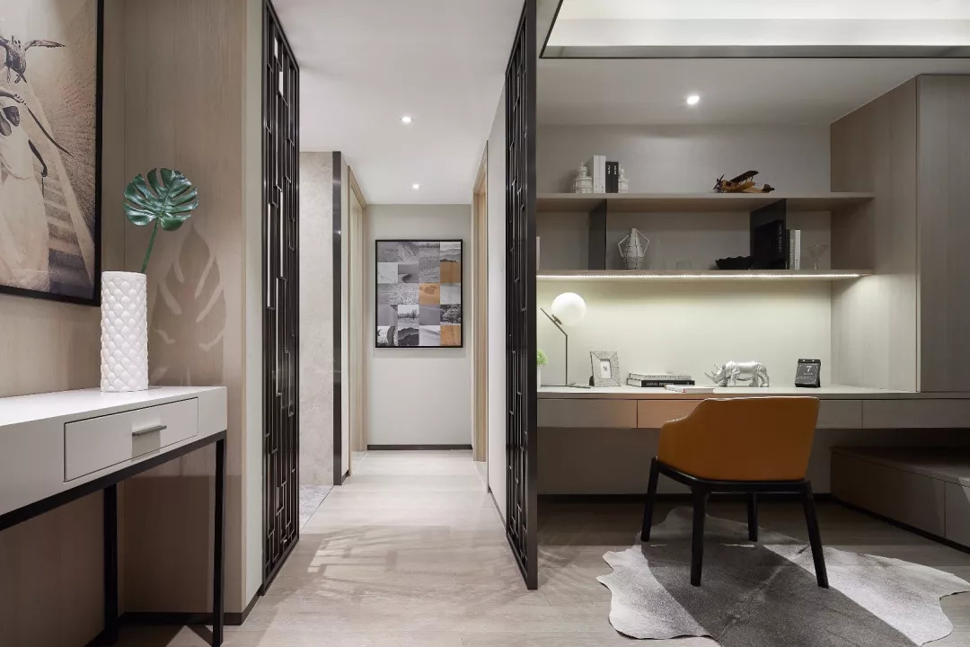 多功能房作為過渡區域,演繹整體戶型空間的書房角色,引入自然光線,既保證使用過程中的視線明朗,也提供了個人休憩的放空區域。