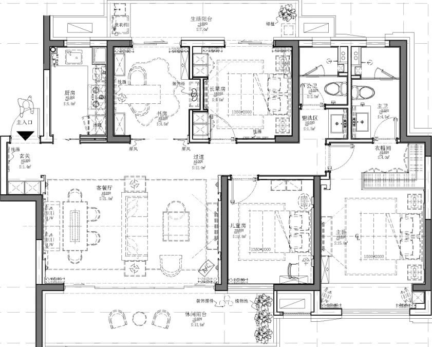 簡約而不簡單,一直是設計中的終極追求,本戶型的設計方案,在講究空間動線流暢及向光性的同時,注重空間形式感。