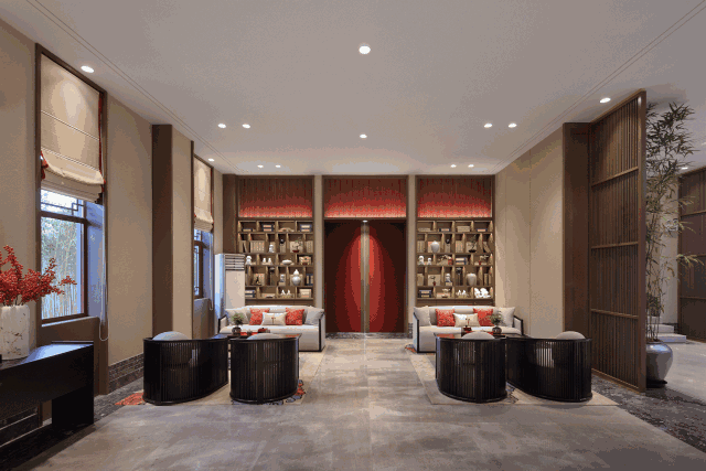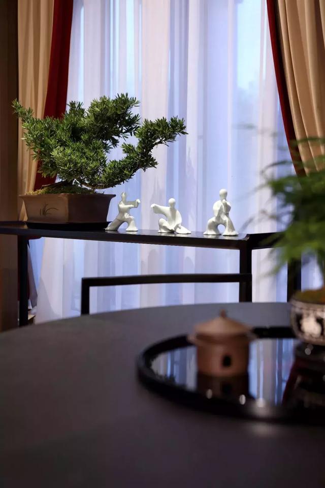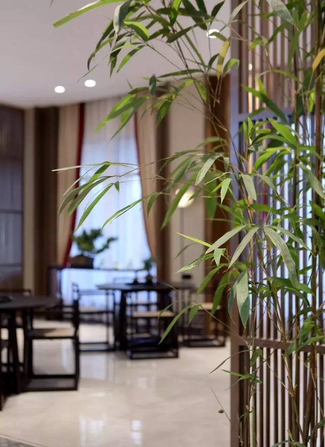 清風(fēng)徐來,茶香徐徐,窗紗隨風(fēng)搖曳,洽談區(qū)明亮舒適,每一寸空間也都浸沐在暖陽之中,陽光從屏風(fēng)隔斷的縫隙灑落 ,彷佛經(jīng)過細心篩選,落入室內(nèi)一隅,綠植禪房花木,古色古香,空間與自然,渾然天成。