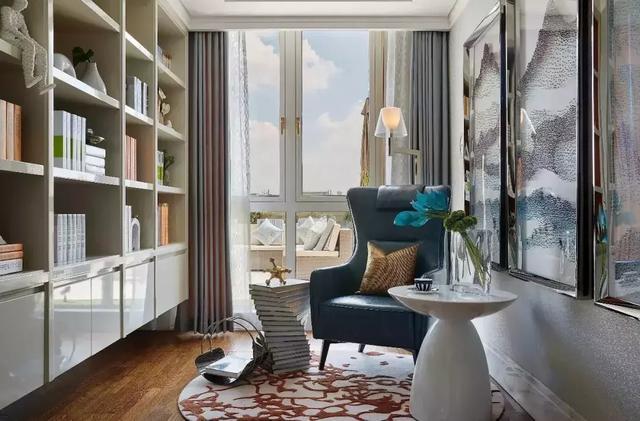 獨特設計加上精致的藝術品陳列,使得這個空間既展現出現代前衛的格調,又充滿了藝術博物館般的優雅氣質,特意把書房臨近樓梯的墻面全部改為落地玻璃,并用黑色邊框與樓梯空間向呼應。
