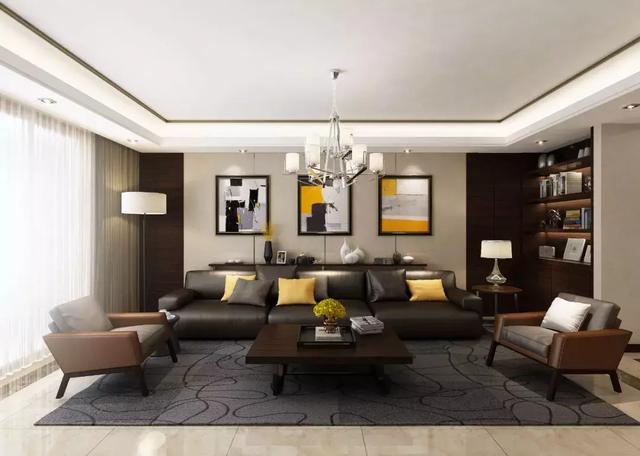 大客廳在舒適和藝術之間達到共振,方形沙發與黑色皮質單椅的圍合,讓家人相處的時間融洽自然,墻面掛飾稍作點綴,地毯仿佛一幅裝飾畫,大面積提升空間的裝飾感。