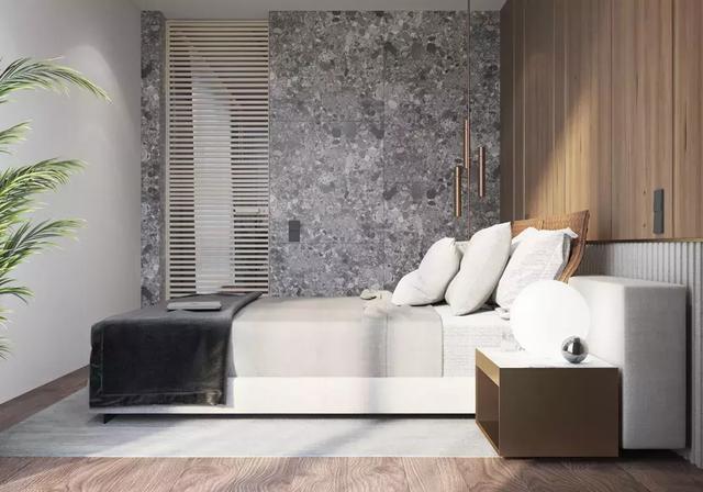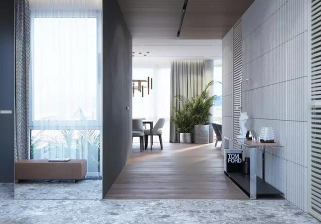 材質上有著各種各樣的紋理,包括石材、木材,和一部分的黃銅材料。這種混合讓室內用有稍稍華貴的感覺。