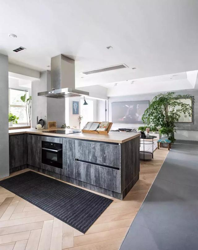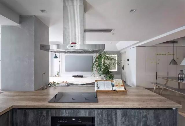 阿布的生活沒有多少柴米油鹽的煙火氣,做飯也只是興之所致的消遣,因而在設計上將原來的封閉式廚房,改成了當下流行的開放式。