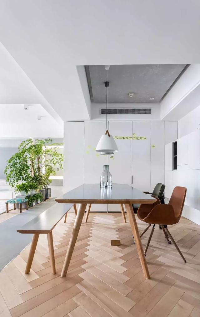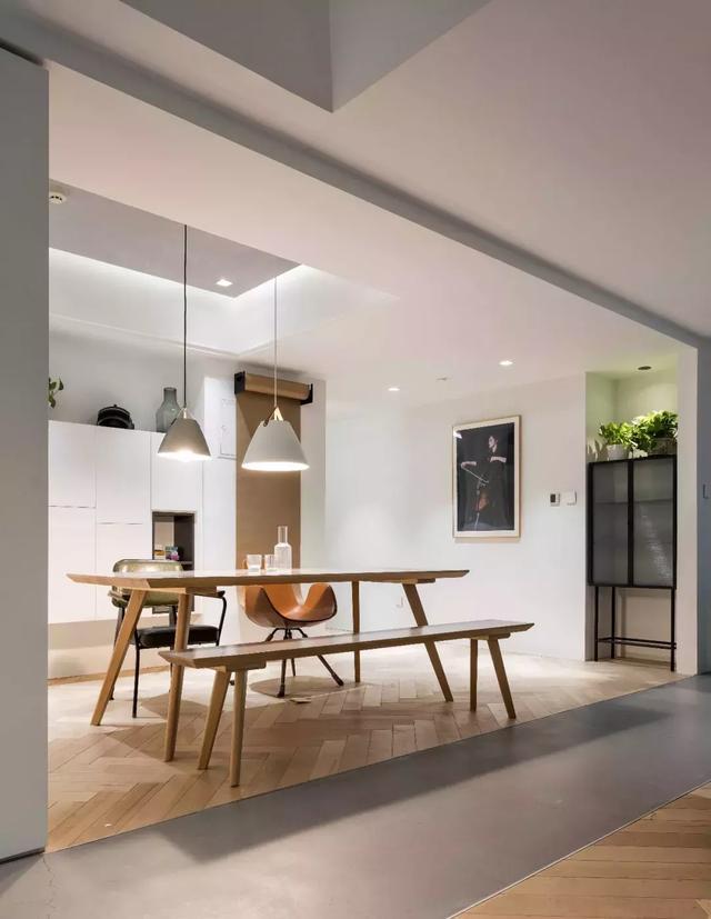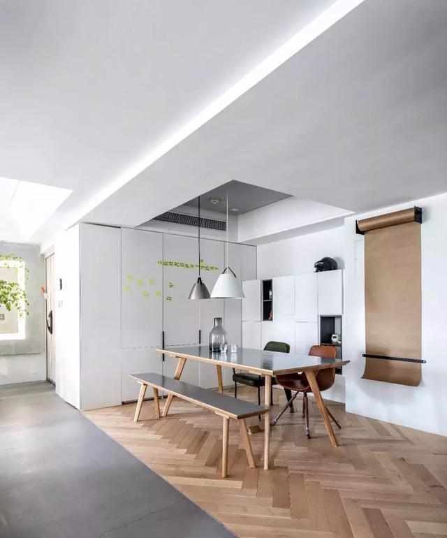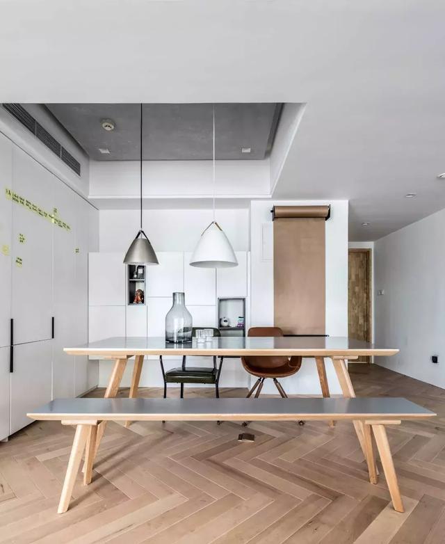 不同于其他家庭將餐廳單純作為就餐空間的功能,阿布家的北歐風大長桌,其實還兼具開會的功能。