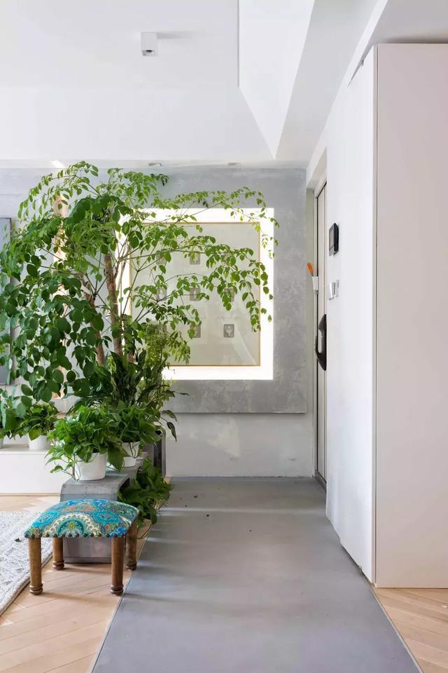 在這里,高低錯落、列陣相迎的綠植,不僅僅作為一種裝飾而存在,而是巧妙地充當了空間的隔斷,將綠意攜進家里,讓人在家待著也能暢快呼吸。
