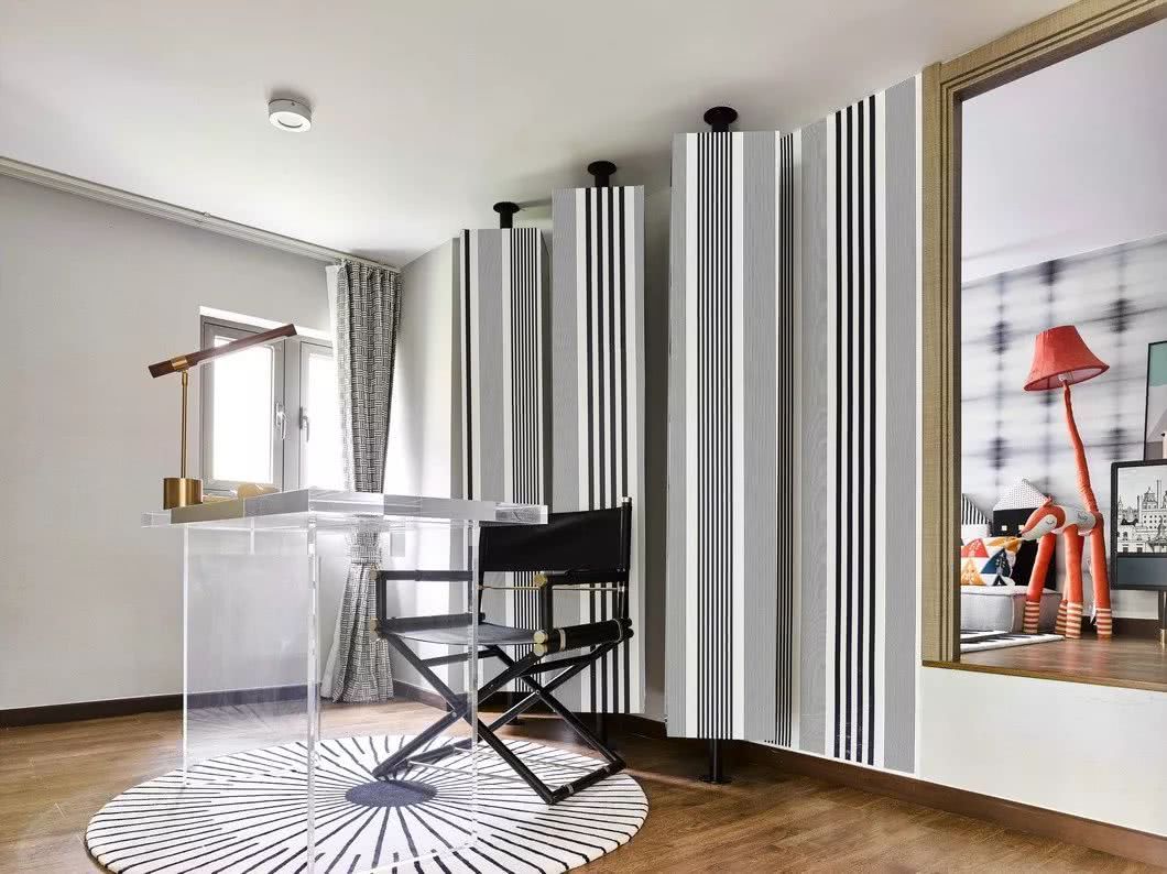 透明的書桌與別具匠心的黑色導演椅子,中和了線條的肆意,讓空間靈秀而富有韌性,感官上簡潔利落。