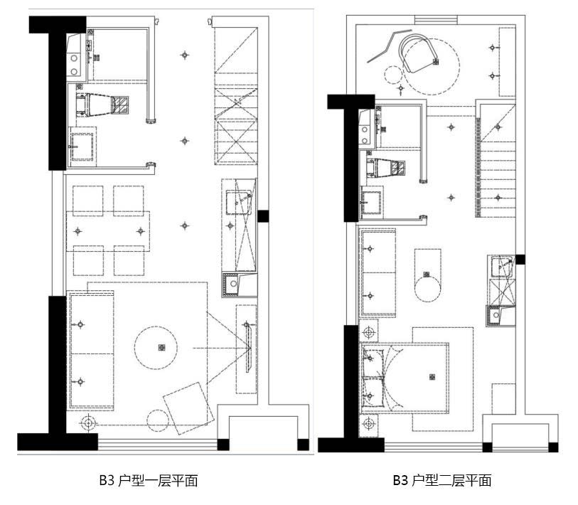 B3戶型走的是面向白領精英的路線,設計師將整體空間控制在不同程度的灰調中,不摻雜偏暖的色調,以“素描”表述生活的舒適和質感。