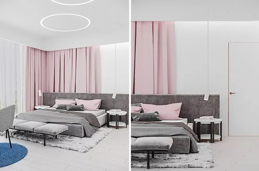 粉紅色具有深度和灰色則顯得細膩。水泥地板,珍珠壁紙,金屬家具,灰窗簾 - 在內飾當中灰色占主導地位,這樣顯得神秘而優雅。它可以強調不同材質及不同材料的優點,并給其他顏色以高貴感。