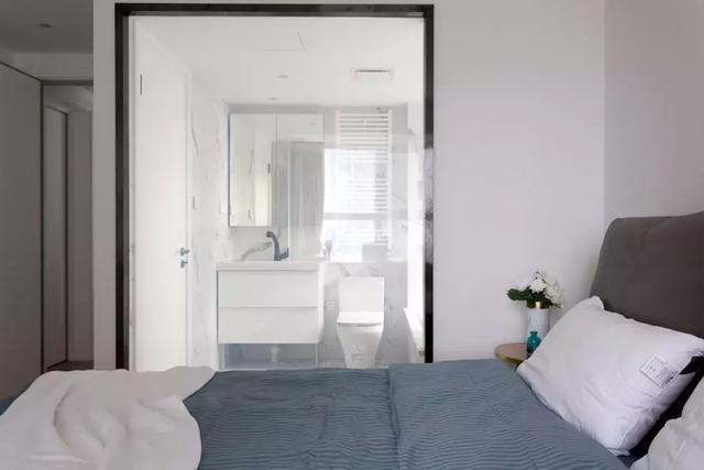 主臥室透過玻璃看主衛。