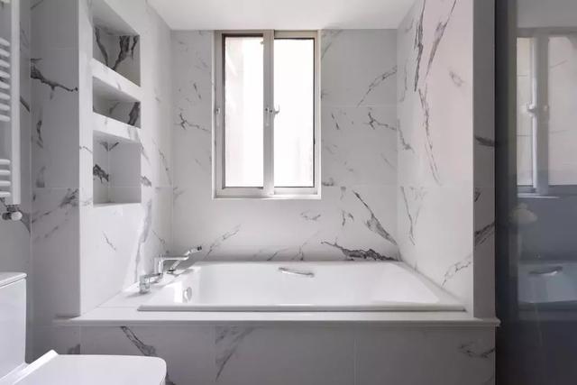 主衛跟次衛是截然兩個不同的色調,太太會經常用主衛,一開始設計的時候就想要一個比較大的浴缸,可以很舒服的沐浴。在設計師的腦海中一直都有一整片白的出現,白色的墻面,白色的地面,再加上白色的潔具,讓整個空間看起來都是無比的潔凈。
