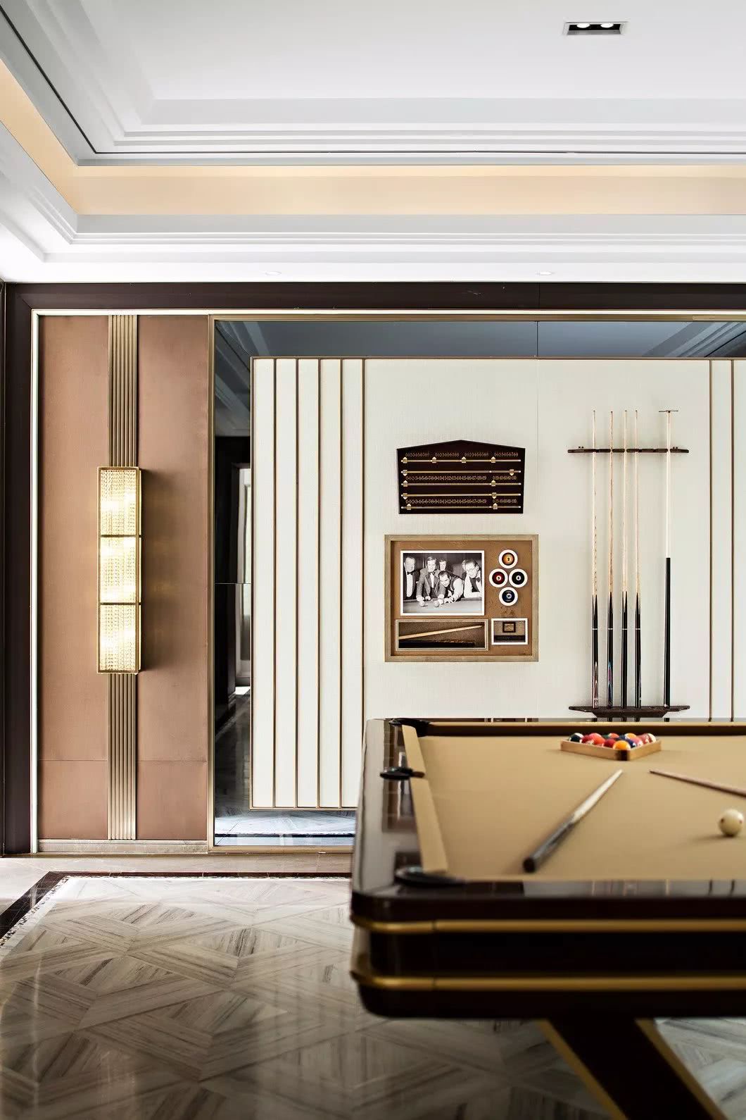 探入空間的深處,如同電影插曲一般,總是能輕易的打動人心。經過將人文、運動、社交等通過功能性規劃,濃縮到生活的方寸之中。在這里,可以是臺球桌上輕松會友,碰撞間促成一場商談;或是在酒杯搖晃間來一場極富層次的會晤;抑或者感受私密影音空間,靜聽心境之聲。