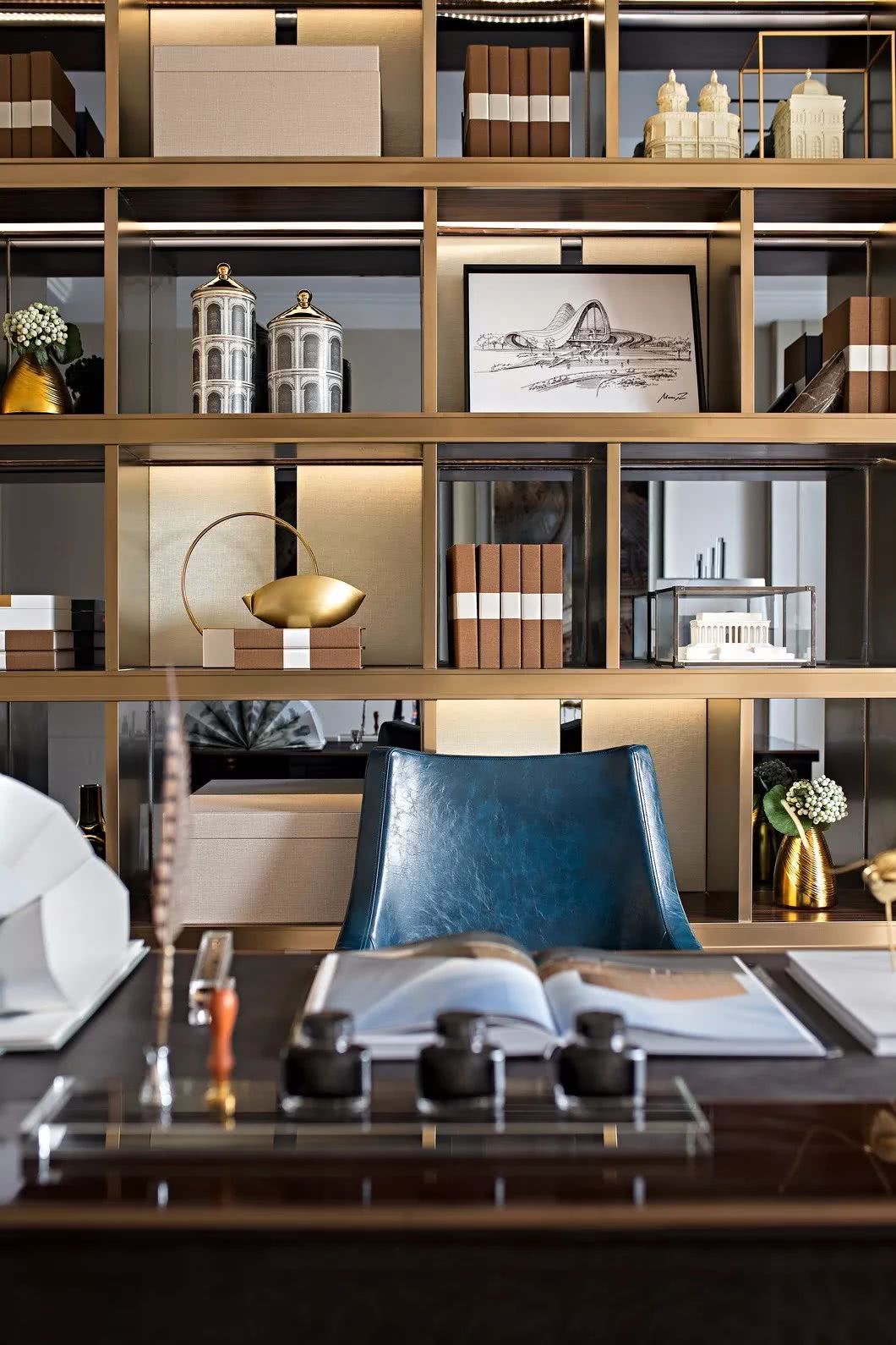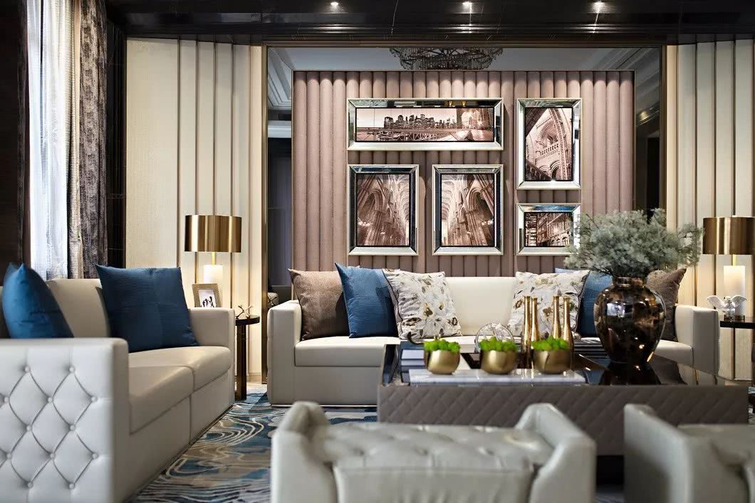 搭配睿智冷靜的藍、自然華貴的金以及中性的色調在空間中平衡出沉穩而不失高貴的特質,體現新時代對生活品質的追求,詮釋海岸邊幸福溫暖的時光。