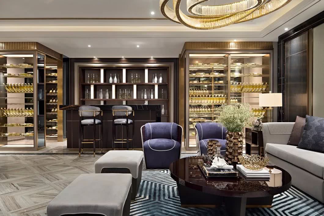 本案坐落在廣東省汕頭市濠江區,擁有蜿蜒綿長的4.5公里海岸線。其樣板間設計契合項目區位的優勢,借用海濱城市的人文、景色、建筑三者特有的元素,以港式奢華的設計為基調,石材、不銹鋼、特殊玻璃、木材、捫皮布等材質靈活貫穿其中