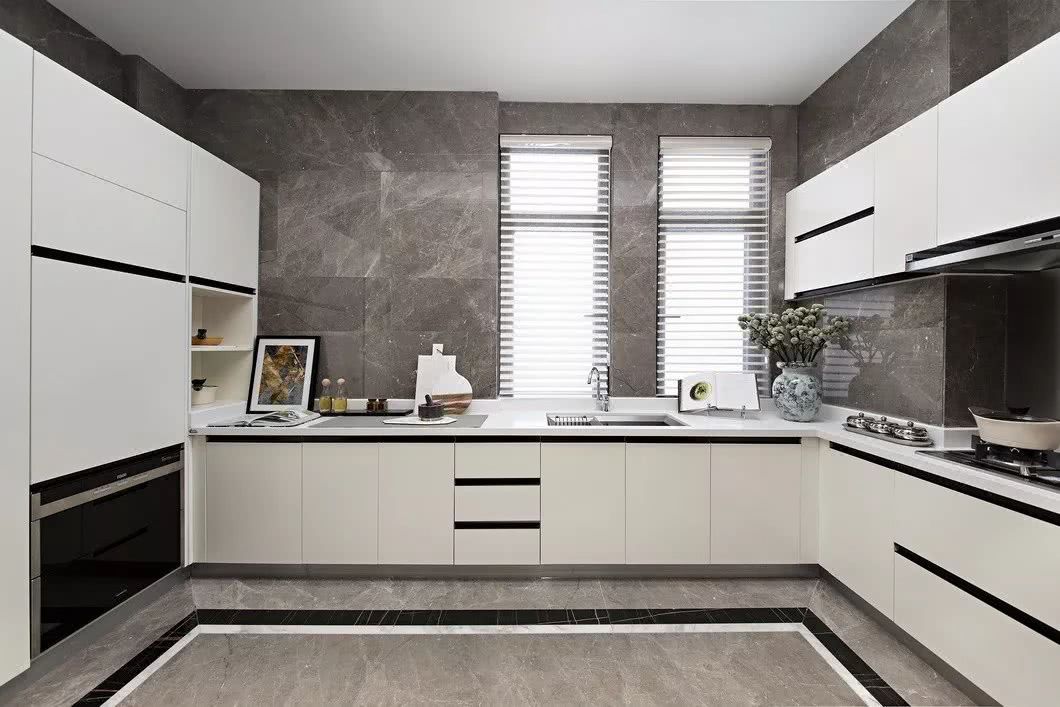移步廚房。淡雅的白色成為統領空間的主體色,流暢的黑色線條成了廚房中驚鴻一瞥的點綴。所有功能區按合理的編排一字形排開,高級定制柜體劃分錯落有致,使得現代風格的生活美學在空間中充分發酵,與其他空間產生一種奇妙對比的化學反應。