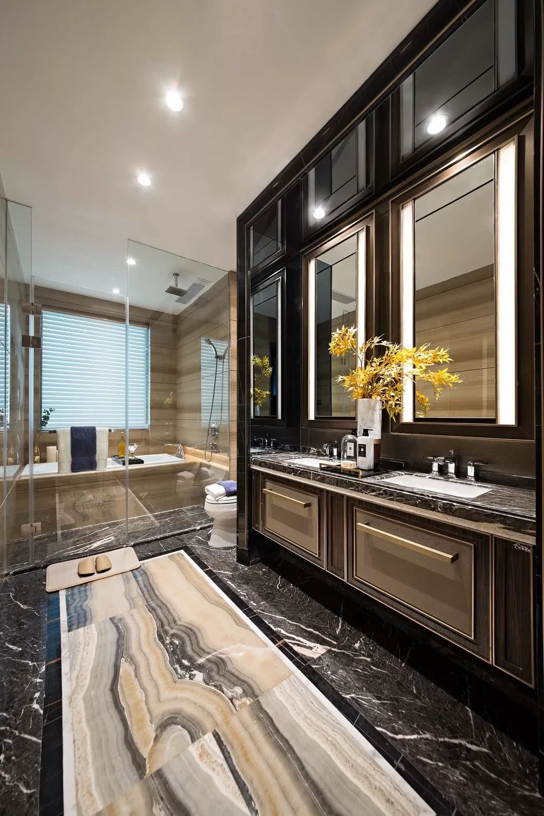 港式風格最為注重生活品質的體現,主浴的地板選用紫灰色的雅致英倫玉石,與金屬材質的墻體碰撞出強烈的現代感,在視覺上既恬逸又時尚。
