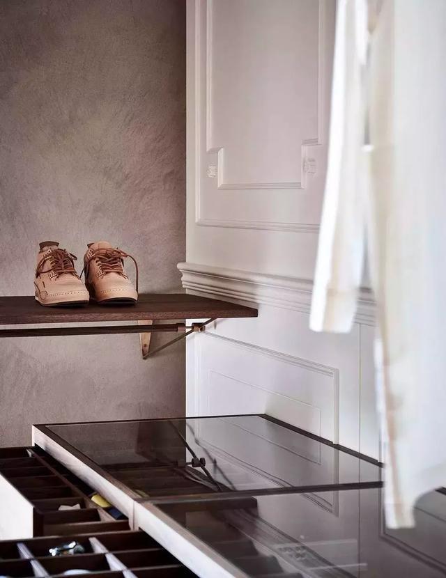 盡管這些空間擁有微妙的裝飾性繁榮,但基于顏色,材料和紋理(如棕色木材,青銅色電鍍,噴灑混凝土和米色洗滌)的共享,折衷調色板,整個公寓內仍有清晰的美學連續性。