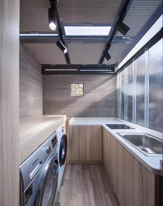 紫外線照射燈管設置在貓咪公寓的上方,可以提供殺菌消毒作用,同時在公寓頂部的末端設置了專用的排風扇,確保空氣流通與新鮮。在走廊的盡頭設置了貓飯專用廚房,與人類廚房分開,這里提供了完畢的冷熱水,電磁爐,水槽等設施,可以進行專門的貓飯烹飪。