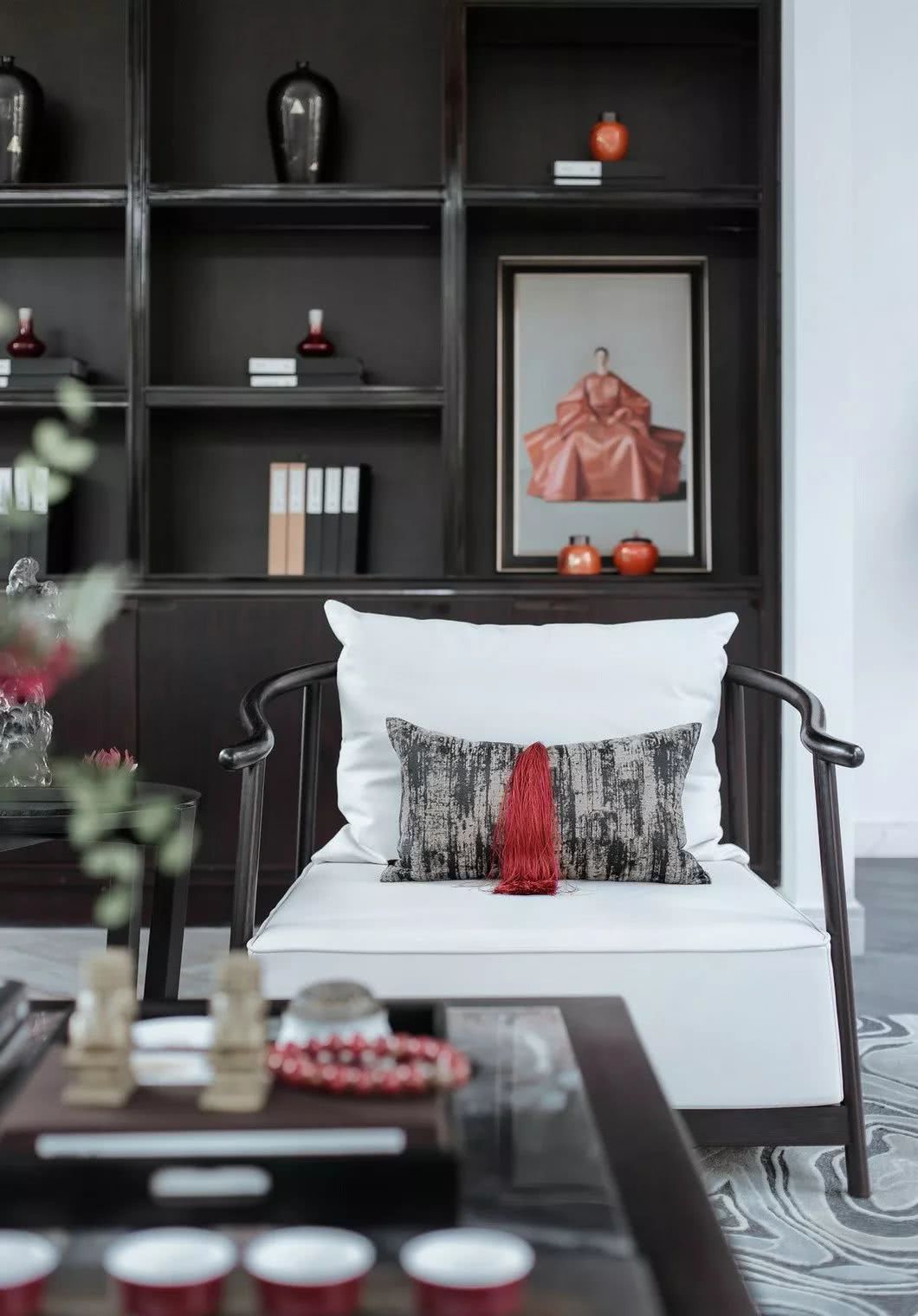 此詩句詮釋出此處的情景意境,可喻為“偷閑”,享受安靜愜意之地。故此氛圍之中,設雅座、置香爐,以意入景,處處透著舒適閑散的韻味。縷縷正紅獨特的點綴空間,其鮮艷欲動的神韻氣質愈發使人迷醉,如初雪中綻放的紅梅,素雅中釋放著澎湃的生命氣息,席卷心靈。