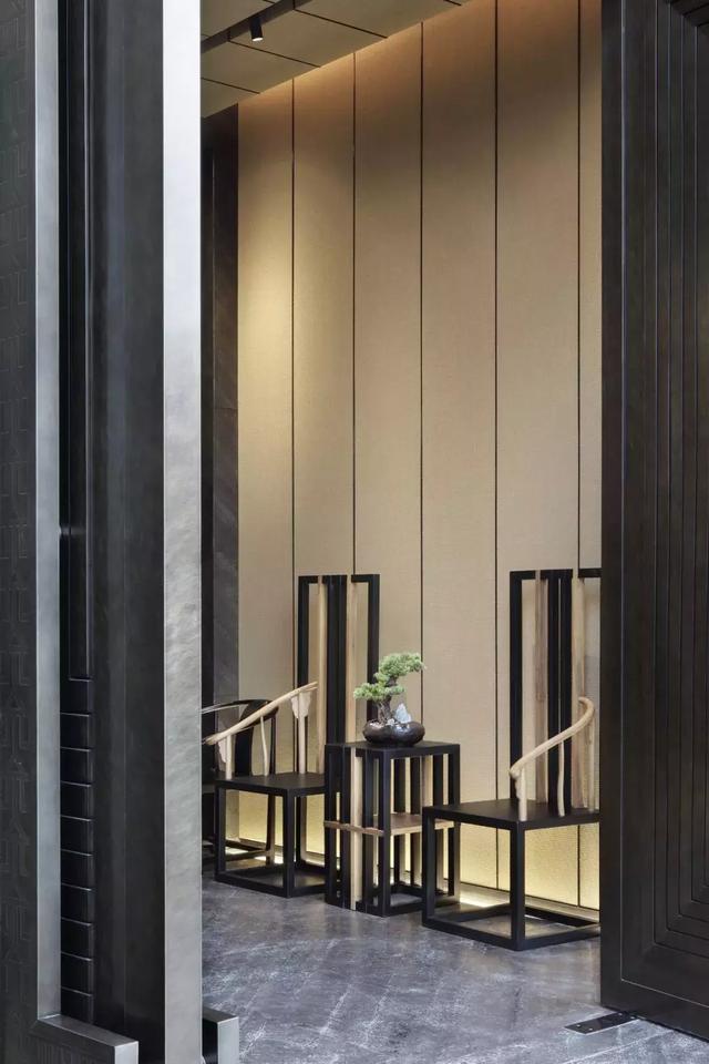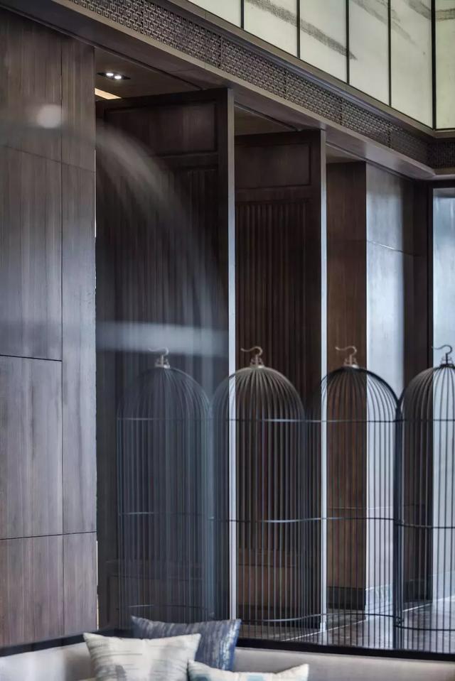 鳥籠猶如文化的載體將其融入空間,韻涵民間的藝術、凋刻的工藝、以中式圖騰展現中式的雅致;鳥籠框架呈縱向紋路,光線透徹,形態各異,流暢的線條營造空間感,鳥籠屏風劃分空間而不侷促,俐落的棱角線條彰顯大器。