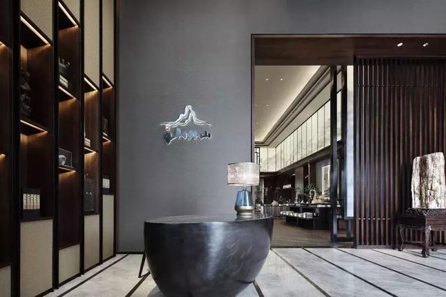 甫進接待處由弧線營造的天花,直線鋪墊的地面及屏風,以木及石配上自然的淺棕色澤,猶如山巒橫亙的意境,締造《桃花源記》的林盡水源,便得一山,山有小口,彷佛若有光;讓人沉淀心情迎來寧靜的棲所,彰顯格外的清新自在。