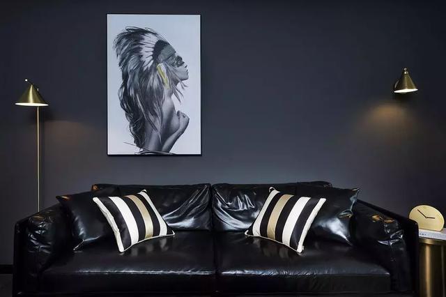 白色人物掛畫,減少大面積黑色帶來的壓迫視覺感受。讓掛畫成為視覺中心,使得整體風格既俏皮又現代。